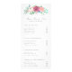 Elegant beauty salon service menu / price list rack card with a flower garland consisting of pastel pink and mauve roses at the top. Your services are in a medium grey with your business name in a script font. The back is a dusty blue and may be changed to any colour you wish. Each side has four premade sections and your business information is on the bottom of the backside. This floral design is great for a beauty, hair or nail salon.