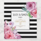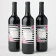 Pink Floral Black and White Stripe Wedding Wine Label