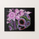 Pink Floral Black Sugar Skull Day Of The Dead Jigsaw Puzzle