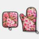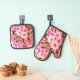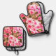 Pink Floral Bloom Pattern Oven Mitt & Pot Holder Set