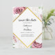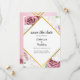 Announce your most exciting news about your upcoming wedding with this Save the Date card that features a faux gold effect geometric frame with floral elements in shades of pink and white flower blooms.