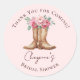 Pink Floral Boho Cowgirl BRIDAL SHOWER Thank You Classic Round Sticker