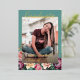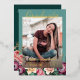 Unique and trendy gold foil congratulations graduate announcement and celebration party invitation card framed with a beautiful colourful pastel blush mauve taupe pink watercolor spring and summer floral wreath on a classic chic deep dark teal blue green coloured background. With room to customise or personalise with a photo, the name of the graduate, class graduation year, high school, future college or university name, and celebration party event information. Let the family, friends and neighbours know there is a happy graduate ready to conquer the world, and invite everybody to come celebrate the happy event with you!
