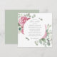 Modern botanical design features pink roses nestled in sage green eucalyptus leaves. Your bridal shower details are placed in the centre on a white circle. The dove grey text complements the botanical foliage perfectly to create a sophisticated and chic colour palette. This bridal shower invitation is part of the Pink Rose Botanical collection. It contains many DIY wedding templates that let you easily create your invitation and bridal shower party supplies. You should see a link to it on this page please contact me, if you don't see the link or need help with an item.