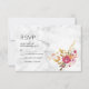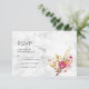 Pink Floral Bouquet on White Marble Wedding RSVP Card