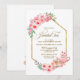 Celebrate the excitement of your recent engagement and invite your friends and loved ones to a bridal tea with this elegant gold geometric framed pink floral bridal shower invitation.