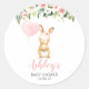 Cute girl's baby shower bunny themed envelope seal featuring a cute watercolor bunny, heart shaped pink heart and a pink, white and green floral arrangement.