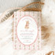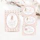 Celebrate your little bunny with this sweet baby shower invitation featuring soft pink stripes, vintage roses, and an adorable watercolor bunny illustration.