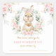 Pink Floral Bunny Rabbit Baby Shower Bookplate Square Sticker