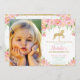 Pink Floral Carousel 1st Birthday Girl with Photo Invitation