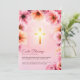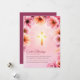 Pink Floral Catholic Cross Easter Blessings Holiday Card