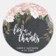 A beautiful thank you sticker with a watercolour pink and white floral design, set on a chalkboard effect background and brush lettering "love and thanks". Easy to change or delete the text field shown to suit your personal requirements. Perfect for weddings or events at any time of year! Please visit my shop to see matching items in this collection. Some graphics used from TwigsAndTwineArt.com