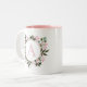 Pink Floral Circle Frame Monogram Editable Initial Two-Tone Coffee Mug
