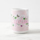 This mug is made of high-quality ceramic and features a pink floral design with a custom congratulations greeting text.