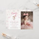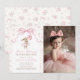 Pink Floral Coquette Bow Bunny 1st Birthday Photo Invitation