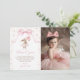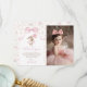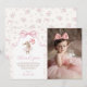 Pink Floral Coquette Bow Bunny 1st Birthday Photo Thank You Card