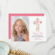 This one photo First Holy Communion thank you card features a pink floral watercolor cross with yellows, coral and greenery leaves and foliage. Perfect for any religious event: First Communion, Baptism, Christening or Confirmation.