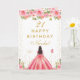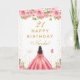 Pink Floral Dark Skin Girl Birthday Card