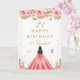 This elegant and glamorous birthday card can be personalized with a name or title such as daughter, granddaughter, niece, friend etc. The design features a beautiful princess with dark hair and dark skin in a pink ball gown. The text combines handwritten script and modern sans serif fonts for a classy and sophisticated look. The floral arrangements, butterflies and gold confetti create the perfect blend of rustic and chic.