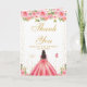 Pink Floral Dark Skin Girl Birthday Party Thank You Card
