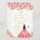 Pink Floral Dark Skin Princess Birthday Party Invitation