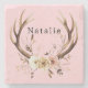 Pink Floral Deer Antlers Personalised Stone Coaster