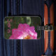 Never lose your luggage with this easy to spot luggage tag that features an image of a bright pink flower on a dark green background.
