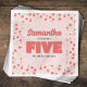 Add a charming touch to her fifth birthday party with this custom cocktail napkin featuring bold pink five typography and a cute floral pattern. Designed with a simple template and minimalist layout, it blends modern style with elegant, chic flowers for a soft, stylish feel. Perfect for coordinating with your custom party supplies, this napkin brings a dash of stylish whimsy to the celebration. Personalise it for a truly memorable fifth birthday!