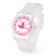 I only have one complaint. I ordered the watch with clear case and strap, and what was sent was white case and strap. I'm going to keep it because 1) it looks very nice in white, and 2) it would take too long to get a replacement made and sent in time for my occasion. Aside from the mix up with the color, the watch does look very good in white. The purple dial is actually sparkly which did not show in the online images. That was a nice surprise. If you like Swatch watches this is very similar to those. It's 33.6mm in diameter, 10.5mm thick, and 40.6mm lug to lug. Stainless steel case back says 3ATM/30m WR, so no swimming or showering or submerging this one. If you like Woodstock, this is a great choice.