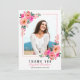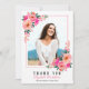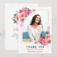 Pink Floral Frame Graduation Photo Thank You Card