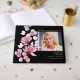 A black and gold elegant pink floral photo funeral memorial celebration of life guest book. Designed by Thisisnotme©