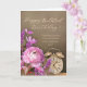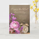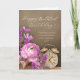 This elegant belated birthday card features a soft tan background paired with a beautiful arrangement of pink, mauve, and lilac flowers along the left side for a fresh, uplifting touch. A vintage gold alarm clock sits at the bottom corner, adding a warm time-themed detail that suits late birthday wishes perfectly.