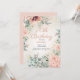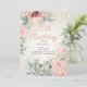 Pretty pink springtime watercolor floral and green leaves 70th birthday party invitation with gold glitter. Text is an elegant script font. Contact me for assistance with customisation or to request matching or coordinating Zazzle products for your party.