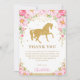 Pink Floral Gold Glitter Horse Birthday Party Thank You Card