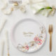 Pink Floral Golden Peach Modern Wedding Party Paper Plate