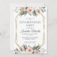 An elegant watercolor blush pink floral with greenery elegant 50th birthday party invitation with gold frame. Floral accent on the back of the invite.
