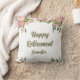 Pink Floral Greenery Rustic Boho Happy Retirement Cushion