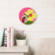 Pink Floral; Ladybug Large Clock