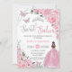 Pink Floral Light Brown Princess Sweet 16 Birthday Invitation