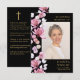 Elegant black and gold funeral sympathy memorial photo prayer cards featuring pink flowers. You can customise it with your chosen prayer or poem if you prefer. Designed by Thisisnotme©
