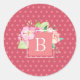 Pink Floral Monogram Initial Classic Round Sticker