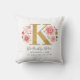 Pink Floral Monogram Initial Letter K Birth Stats Cushion