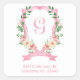 Pink Floral Monogrammed Crest Return Address Square Sticker