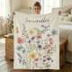 Pretty pink floral fleece blanket with personalised name. Delicate watercolor wildflower design. Easy to change the text.