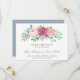 Romantic save the dates featuring a flower garland consisting of pastel pink and mauve roses with your wedding details below. The backside is a matching shade of dusty blue and may be changed to any colour you wish. This elegant floral design is perfect for a wedding in the spring.