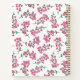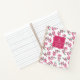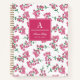 Pretty notebook with a floral pattern of flowers twigs with pink flowers and green stems against a white background. Personalise by adding your name, initial and the subject of the notebook on the raspberry pink label. A cute notebook for your thoughts and ideas.