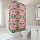 The original pink floral pattern by ZoeSPEAK on this Shower Curtain was created from an original photograph of pink jatropha flowers and buds blooming in the garden. The closeup photo shows the yellow centre of the flower amid the pink petals. The green leaves of the flower on a beige background finish the pattern.