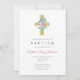 Personalised Pink Floral Peonies Cross Baptism Invitation.