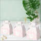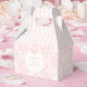 Adorable and sophisticated baby girl shower thank-you favour box features a modern pastel baby pink bow ribbon with cutefloral peonies pattern in the background.