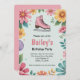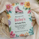 Pink Floral Retro Ice Skating Birthday Invitation